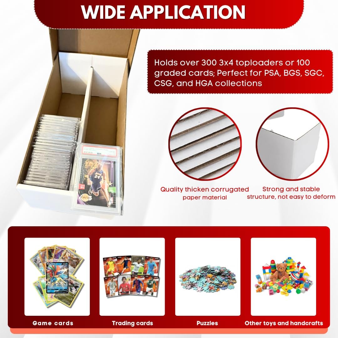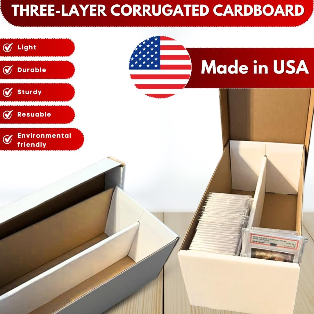 This 3-pack is built for serious collectors who need durable, stackable storage. Made from high-quality cardboard in the USA, each box features a 2-row layout for better sorting and space management. Whether you're storing sports cards, gaming slabs, or magnetic holders, these boxes offer long-lasting protection and easy access.